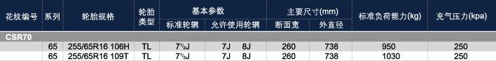 该花纹适用于低断面宽行驶面子午线轮胎。中间两条直纵沟,边部两条曲折纵沟以及块状花纹的设计,适宜于各种轿车和越野车。横向花纹沟加宽设计,改善了排水、排风性能及雨雪泥泞路面的抓着力,可满足全天候要求。